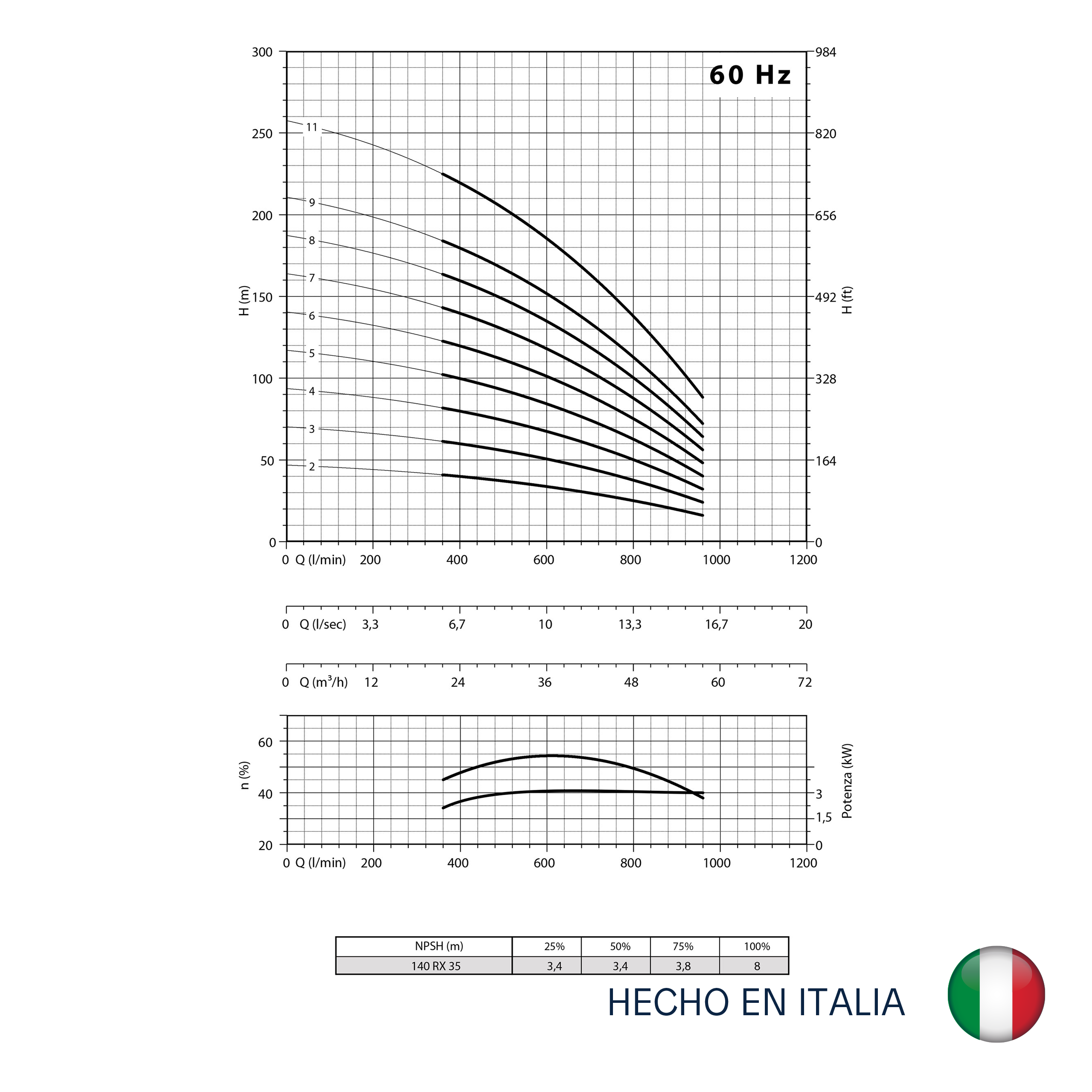 Las bombas sumergibles radiales serie RX gracias al diseño de los impulsores y de los cuerpos se adaptan a caudales medios y alturas elevadas.