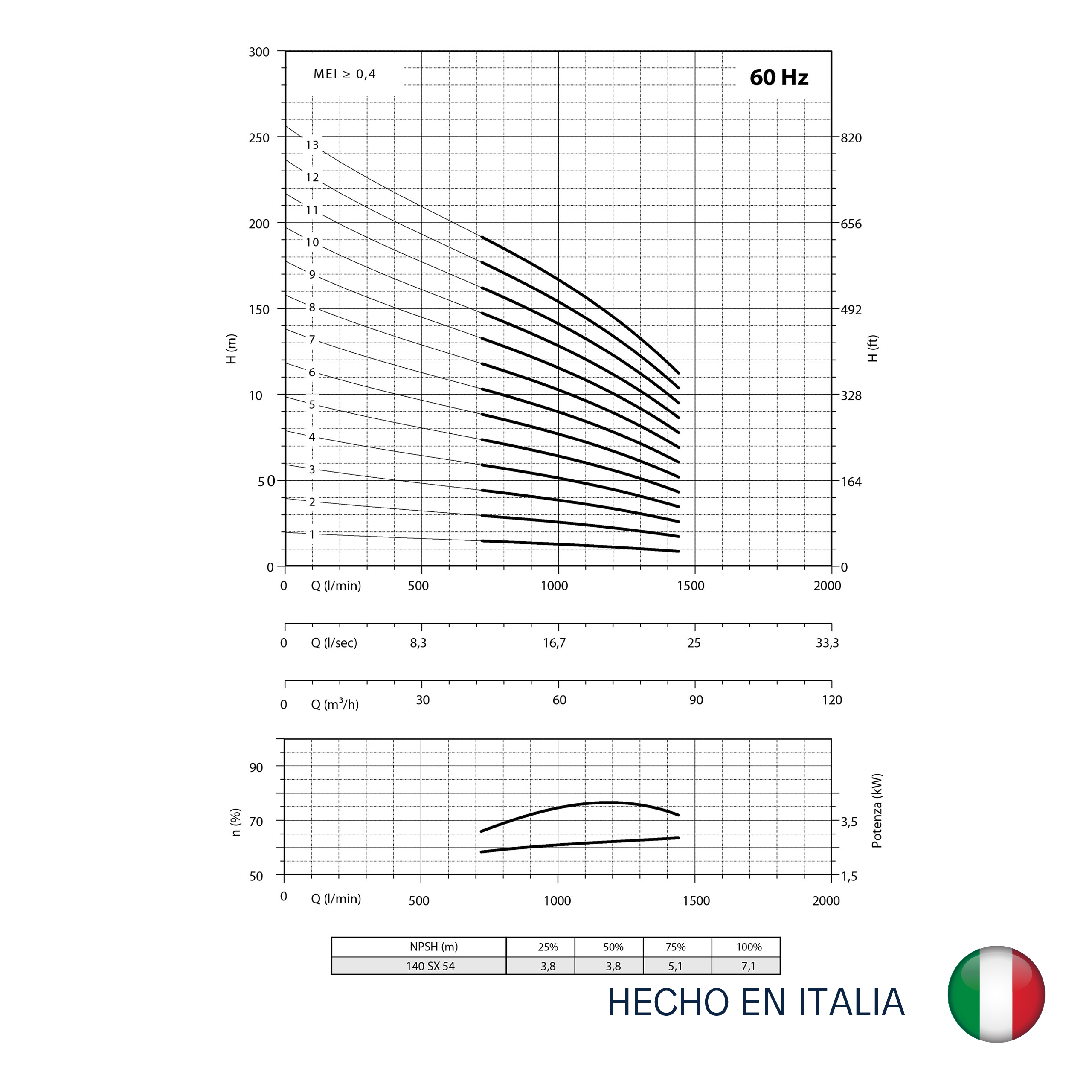 BOMBA HIDRÁULICA PANELLI 140 SX 54 N/10 DE 6″ ACERO INOX 304 – 40 HP