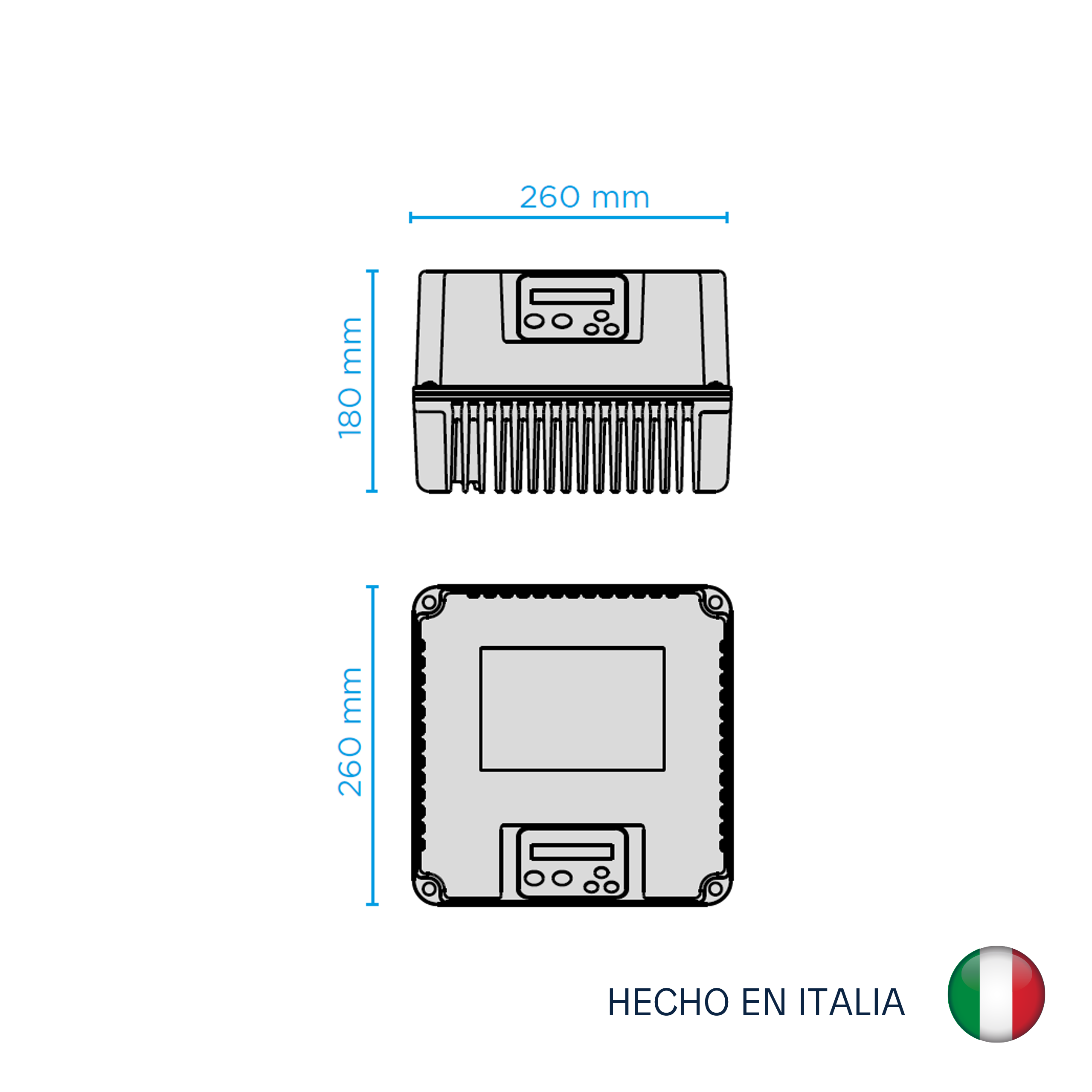 El inversor, en las versiones estándar (solo solar), MP (MultiPower: Solar O AC) y Híbrida (MPH: Solar y AC), puede ser solamente con energía solar, alimentado en AC por paneles fotovoltaicos y/o en AC por la red o generador para asegurar el funcionamiento de la bomba a cualquier hora del día.